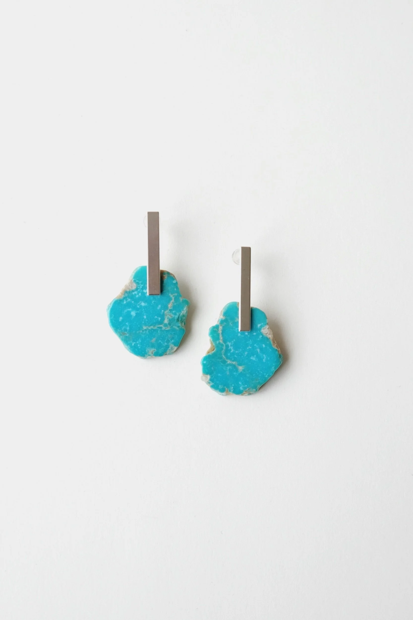 A nugget of Cumpas Turquoise sliced in half and fixed behind a Sterling bar with subtle swaying movement.