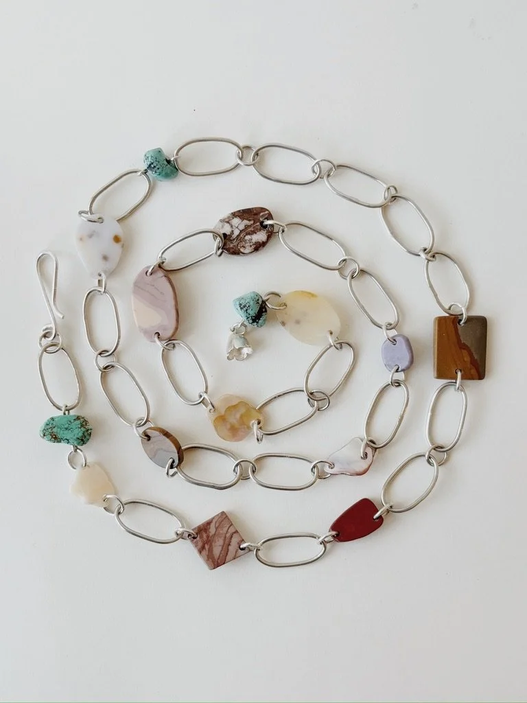 Categories: All NEW Bolo Earrings Necklace Ring Wrist Fine All | NEW | Bolo | Earrings | Necklace | Ring | Wrist | Fine | Gold Stone Bolo Tie Necklace $228.00 Silver Ascent Bolo Necklace $158.00 Mobile Earrings in Spectrum from $280.00 Turquoise Nugget Float Ring from $260.00 Bell Flower Charm Necklace $80.00 Full Spectrum Necklace from $240.00 Float Ring from $250.00 Turquoise Chip Earrings from $90.00 Mobile Earrings in SEA from $280.00 Spectrum Sterling and Stone Belt $800.00 Compass Ring $300.00 Turquoise Drop Earrings from $80.00 Stone Chip Necklace $75.00 Heart Spiral Charm Earrings from $70.00 Turquoise Chip Necklace $80.00 Fern Earrings from $130.00 Stone Chip Earrings from $90.00 Spiral Charm Earrings from $45.00 Stone Drop Earrings from $75.00 Spiral Charm Necklace $65.00 Sparrow Charm Earrings from $60.00 Sparrow Charm Necklace $65.00 Heart Spiral Charm Necklace $65.00 Bell Flower Charm Earrings from $80.00 Initial Cocktail Pick in Sterling $80.00 Lupine Earrings $238.00 Couples Cocktail Pick Set in Sterling $150.00 Hyssop Earrings from $268.00 Duality Split Ring from $238.00 Flow Cuff from $172.00 Seed Token Necklace from $138.00 Flow Collar from $220.00 Willow Creek Porcelain Jasper 14kt Earrings $220.00 Neck Collar with Turquoise Nugget from $182.00 Conjure Earrings in Painted Canyon Picture and Sterling $250.00 Flow Ring $120.00 Nettle Necklace from $118.00 Stone Neck Collar from $182.00 Aster Necklace $78.00 Flow Earrings from $190.00 Aster Earrings $75.00 Senita Studs Earrings from $78.00 Token Bangle from $148.00 Flow Stud from $48.00 Rectangle Token Necklace from $148.00 Round Token Necklace from $148.00 14kt and Azurite Malachite Necklace $350.00 Auntie Bracelet $575.00 Checkerboard Vasquez Ring $262.00 Sterling Stone Bolo Tie Necklace $228.00 Cottonwood Hoops from $98.00 Mosaic Token Necklaces from $178.00 Vasquez Ring from $228.00 Sunburst Studs from $50.00 Diamond Token Stone Necklace from $148.00 Sunburst Necklace $65.00 Conjure Earrings from $210.00 Gold Ascent Bolo Necklace $158.00 Favor Hoops from $88.00 Fortune Hoops from $88.00 Gift Card from $50.00 Sonnet Necklace $78.00 Mercy Hoops from $98.00 Stone Signet Ring $185.00 Blue Mustang Picture Jasper Slab Earrings I $90.00 Willow Creek Porcelain Jasper Slab Earrings II $100.00 Painted Canyon Picture Jasper Slab Earrings I $90.00